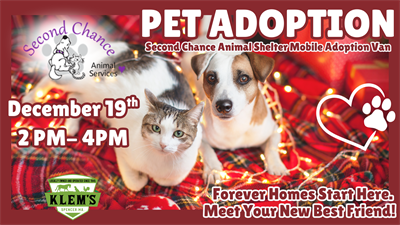 Second Chance Mobile Adoption Van is rolling up to our store on Friday, December 19th from 2-4 PM with some adorable adoptable pets looking for loving homes. Come say hi, fall in love, and maybe even leave with a new furry family member! ![]()